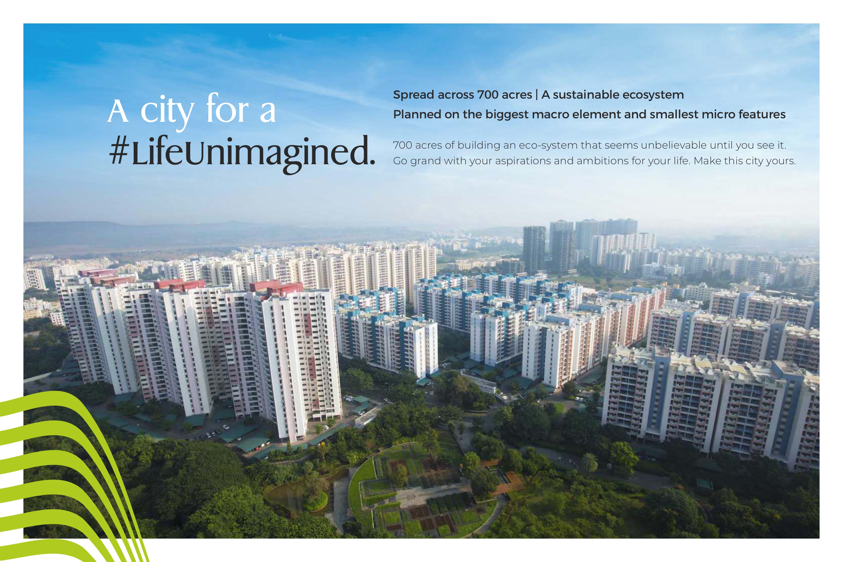 Inspired by the internationally renowned Magarpatta City Model, Nanded City Development and Construction Company Ltd. is a modern, eco-friendly and futuristic living that boasts of residential apartments, IT park, educational institutes, hospitals, Gymkhana, Bus Terminus, Sports Center, Jogging Track, Eco park, Destination Center-I and many other facilities inside this gated community.